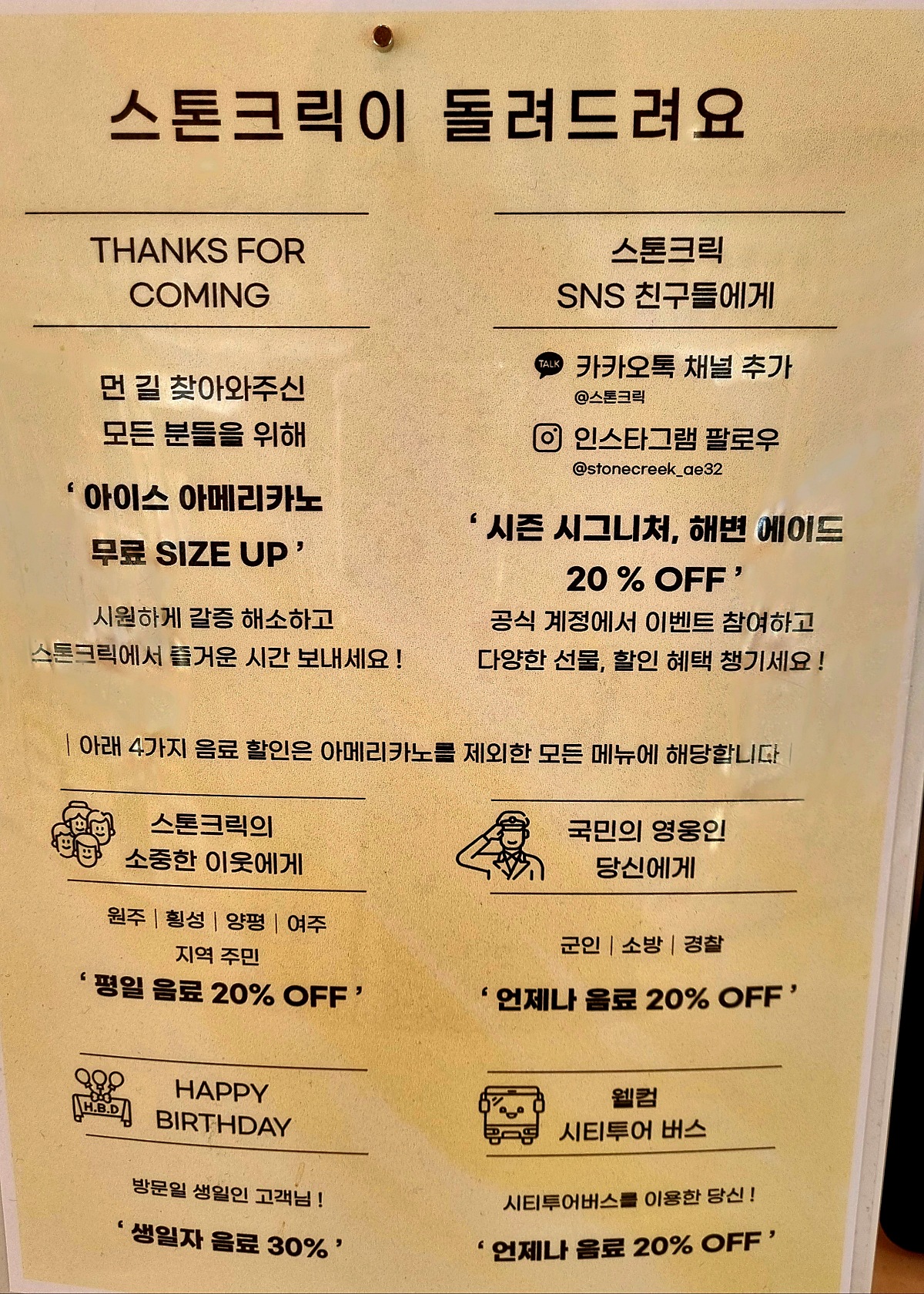 - 혜택: 아이스 아메리카노 무료 사이즈 업